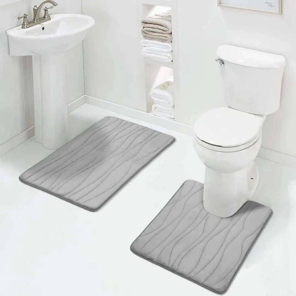 2PCs Bathroom Mat Set, Non-Slip & Ultra-Absorbent Memory Foam Mats